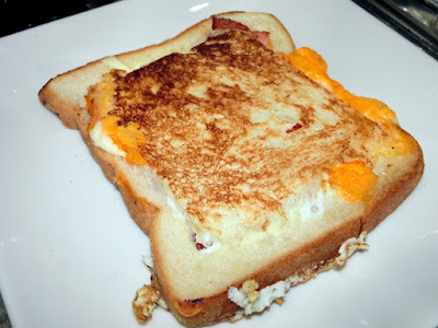 そんなわけで、以前のベーコンカマンベールを作った時の材料とサンドイッチを作った時のパンが余っていたので、少し前にtwitterで話題になっていたやつを朝ごはんに作ってみました。