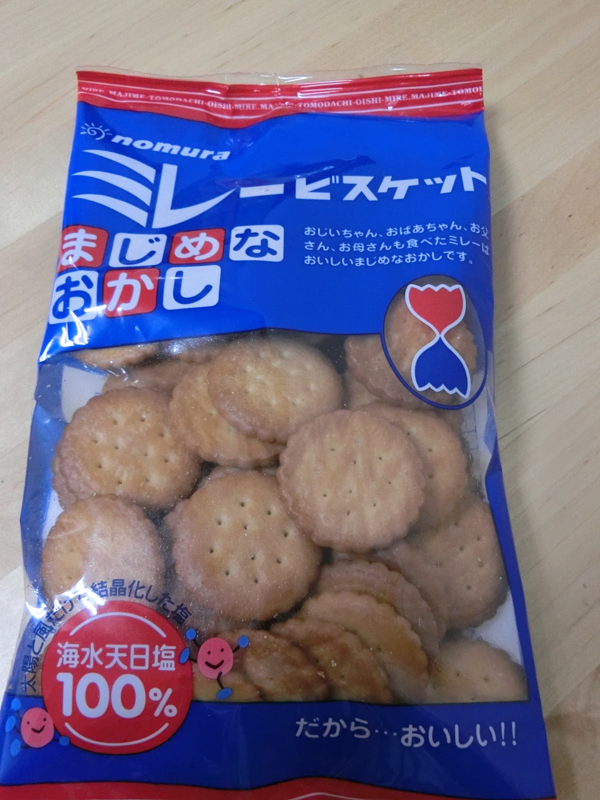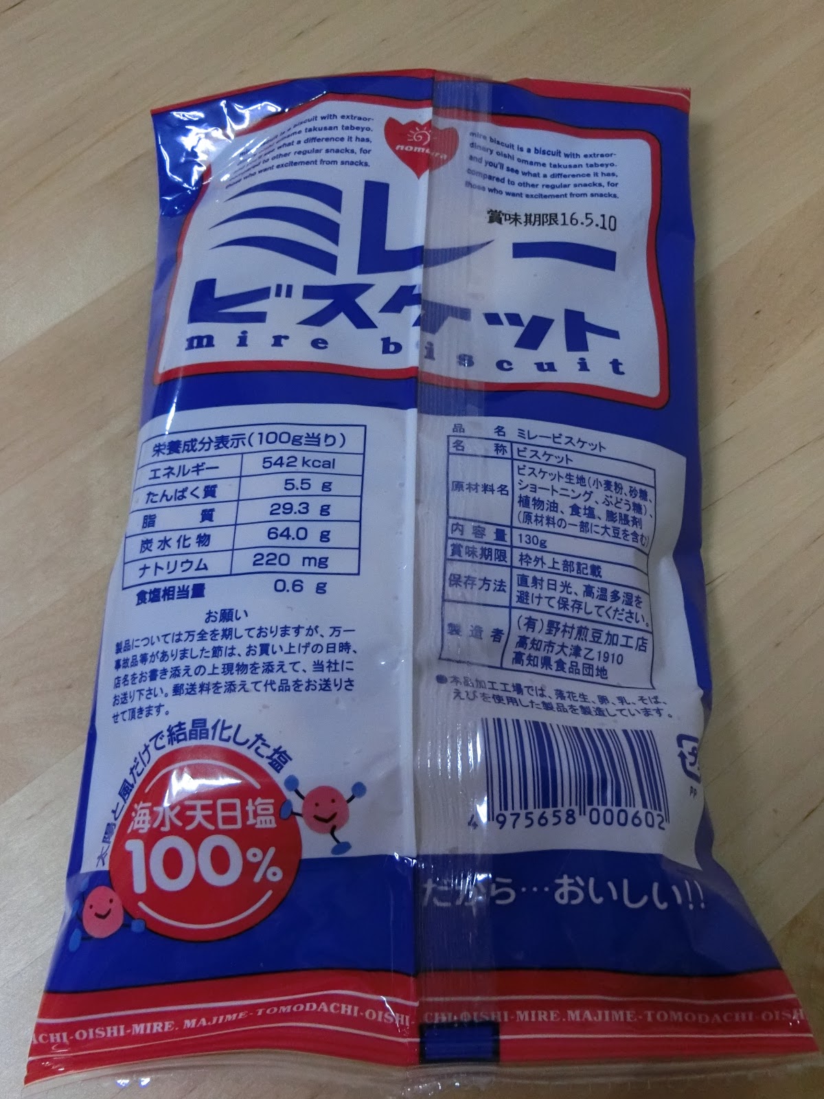 素材の味がしっかりしていて、ホントに美味い。びっくりした。たぶん、今まで食ったビスケットの中で一番美味いと思う。ミルクケーキは山形県。ミレービスケットは高知県。日本全国まだまだうまいもんはありますなぁ……
