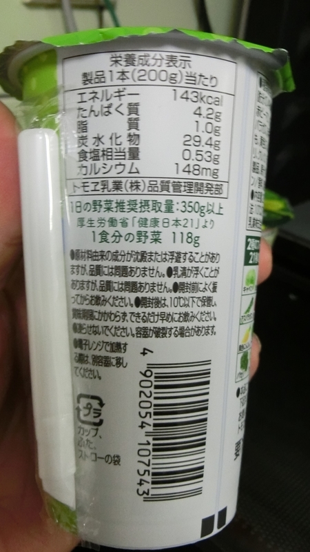 ヨーグルトスムージーと書いてあるがヨーグルト野菜ジュースである。ヨーグルト野菜ジュースなのにキウイ味というなんだかもうよくわからねぇ……