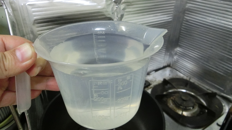 あとあと味を決める時に煮詰めるためにうすーーーーく味を入れます。なので、お吸い物レベルで割ります。