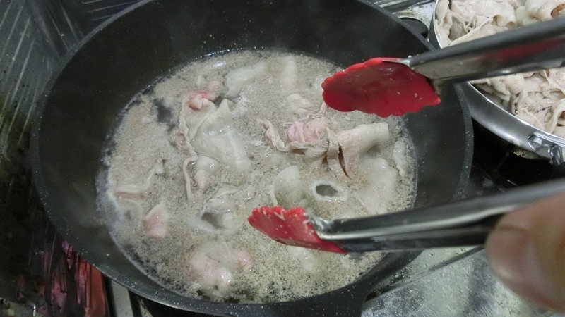 この辺りでスープの味をみて肉を投入。しばらく煮込みました。で、再び味見。
