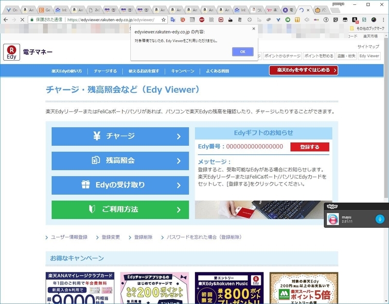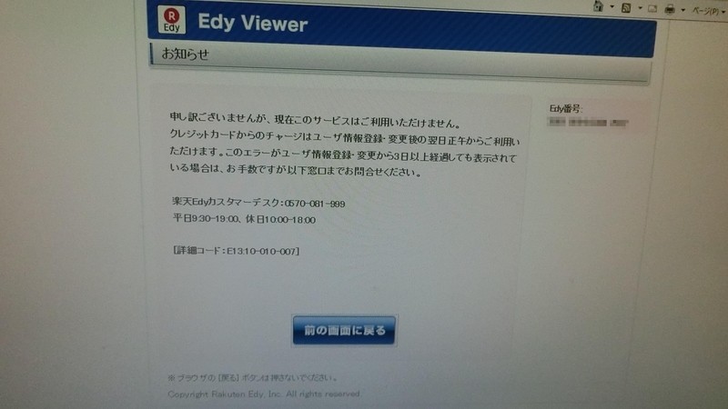 『対象環境ではないためEdy Viewerをご利用いただけません』との表示。