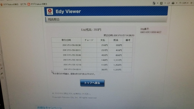 登録完了!簡単! 登録できたってことは楽天Edyストラップの動作も確認できた!